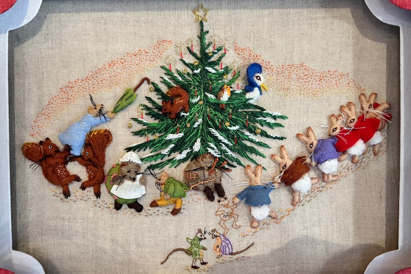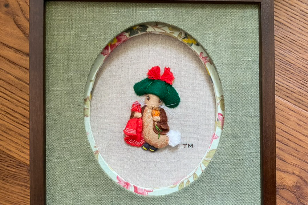 フェルトだけでなく生地を洋服のように作成し図柄を完成させていくテクニックも学べます。