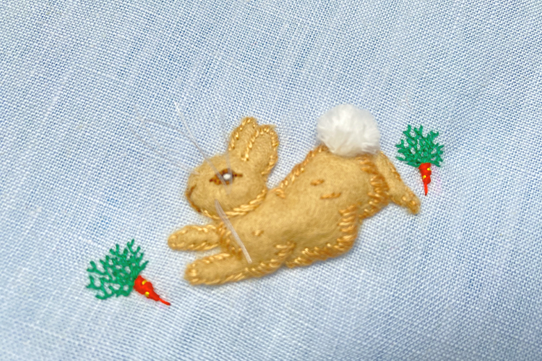お約束としては、浮き彫り刺繍を施し必ず作品に仕上げていただくことです。